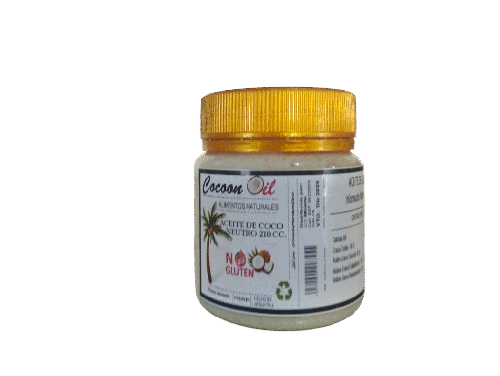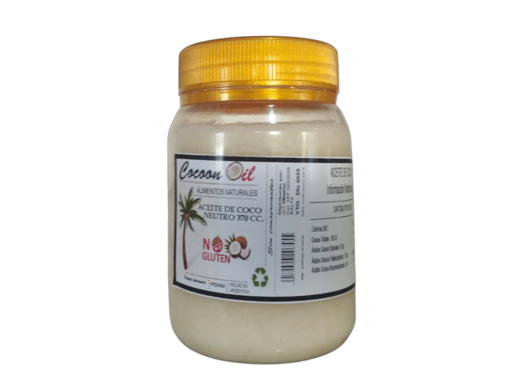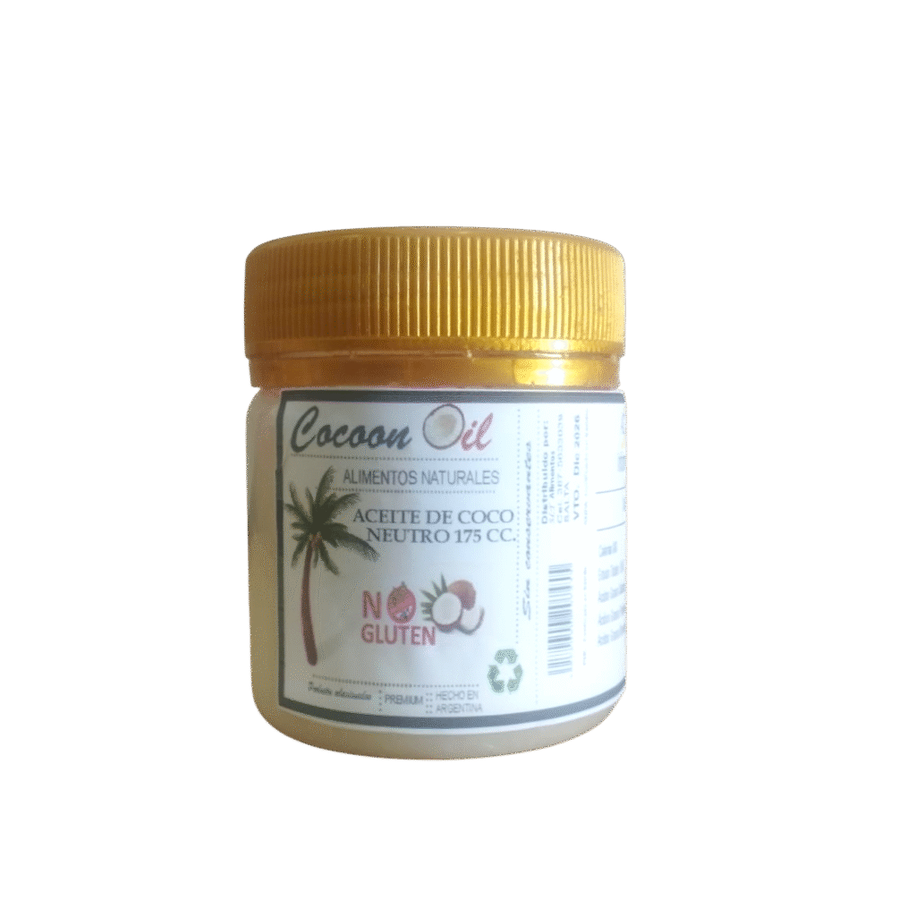 Envasado en Salta, proveniente de Asia donde se produce el mejor Aceite de coco del mundo. Apto para uso alimenticio y cosmético.